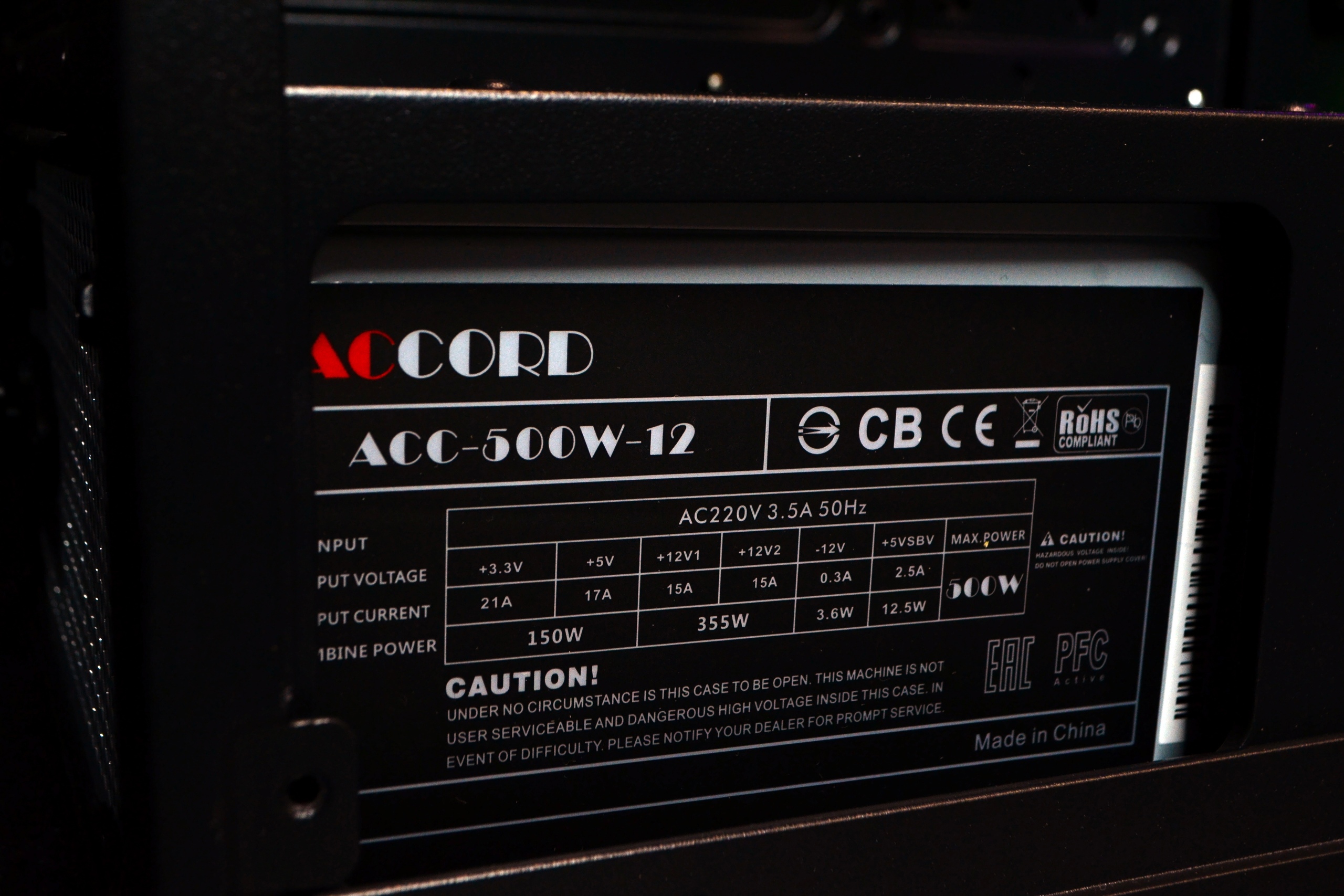 Блок питания: Accord 500W
