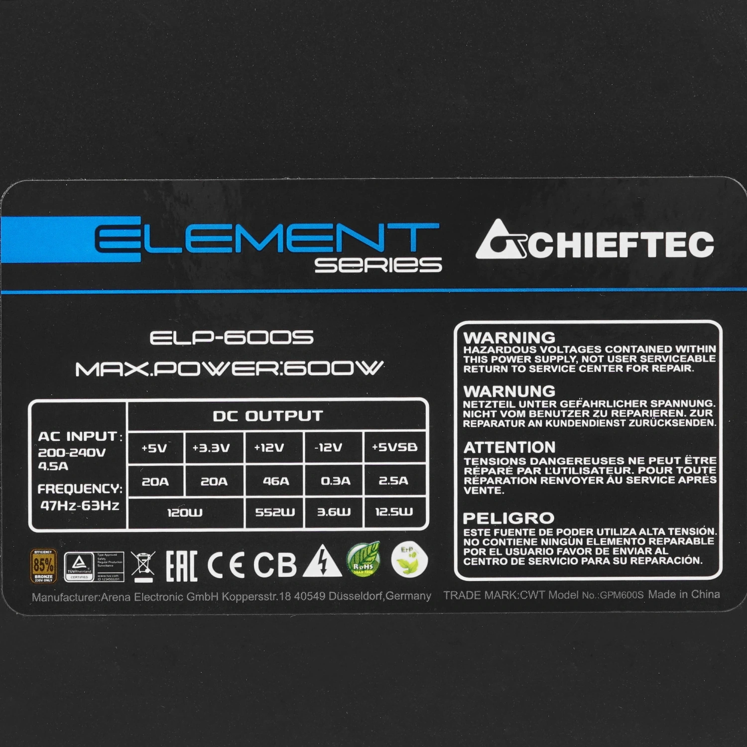 - Модель: Chieftec ELEMENT 600W
