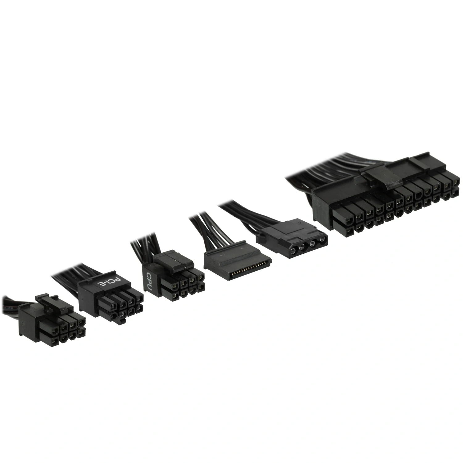 Блок питания оснащен всеми необходимыми разъемами для подключения внутренних устройств. Вы получите 6 разъемов SATA, 3 разъема Molex и 2 разъема PCI-E (6+2 pin), что делает его универсальным выбором для различных конфигураций. Длина кабелей также продумана для удобства установки и организации пространства внутри корпуса.