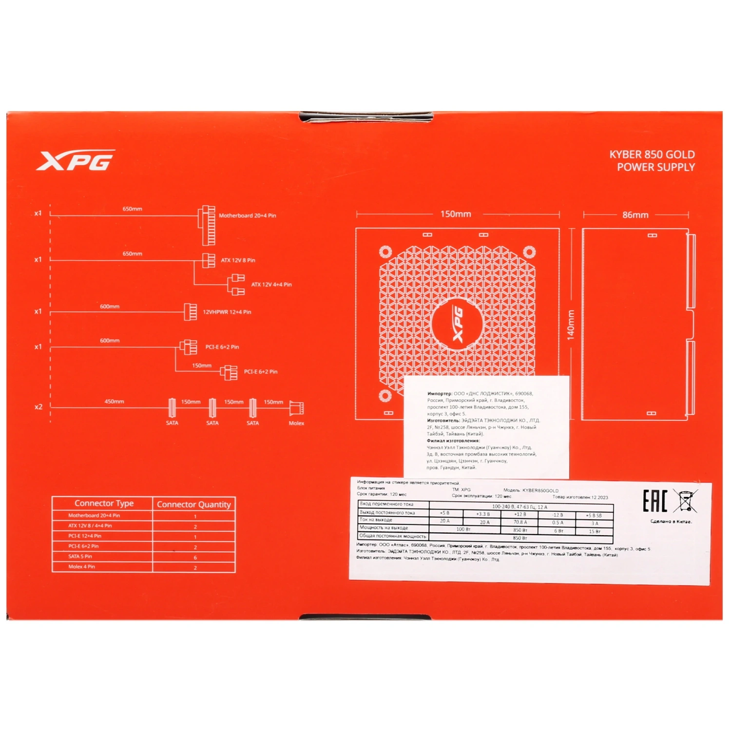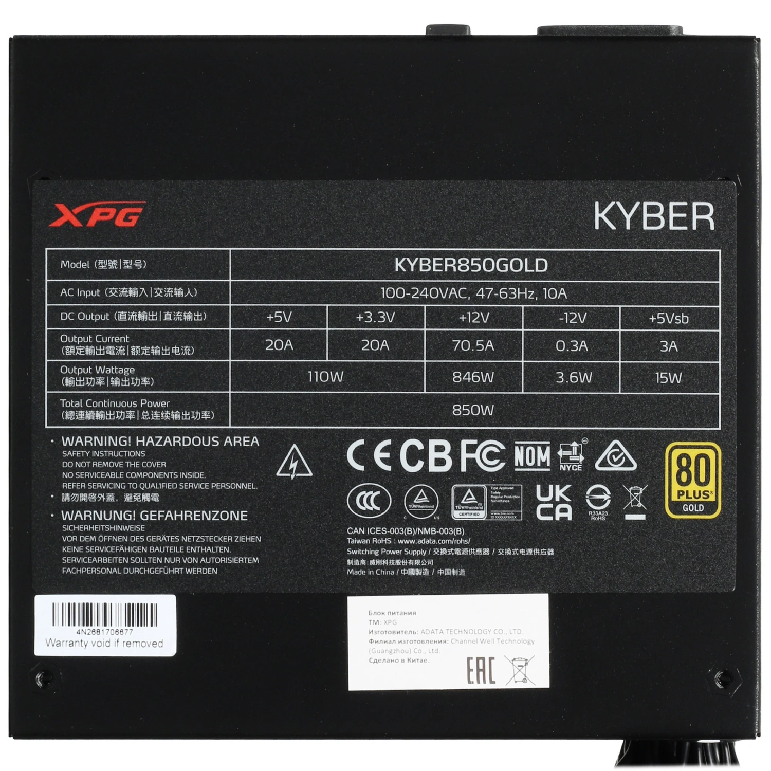 Блок питания ADATA XPG KYBER 850: мощность и надежность