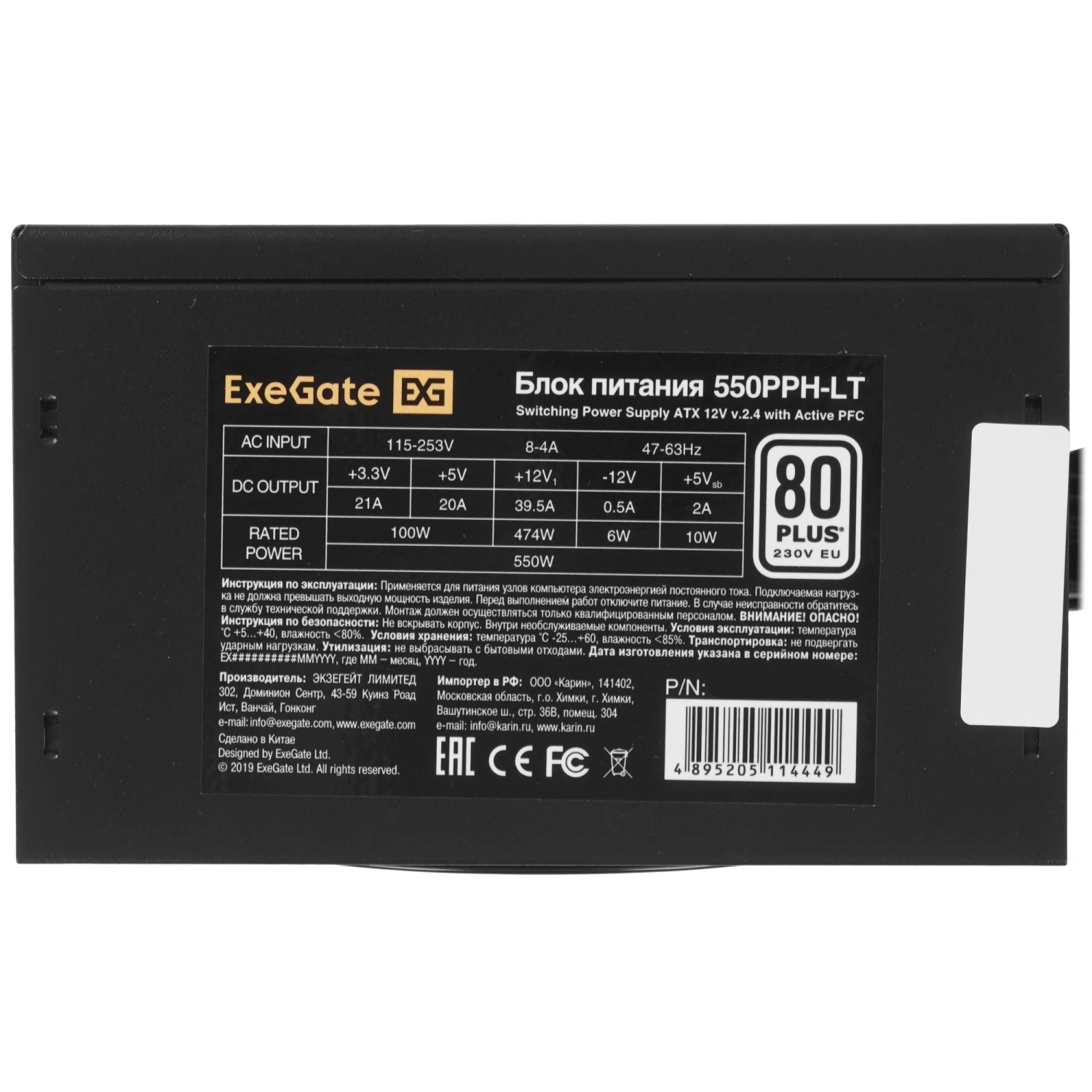 - Модель: ExeGate 80 PLUS 550PPH LT S OEM