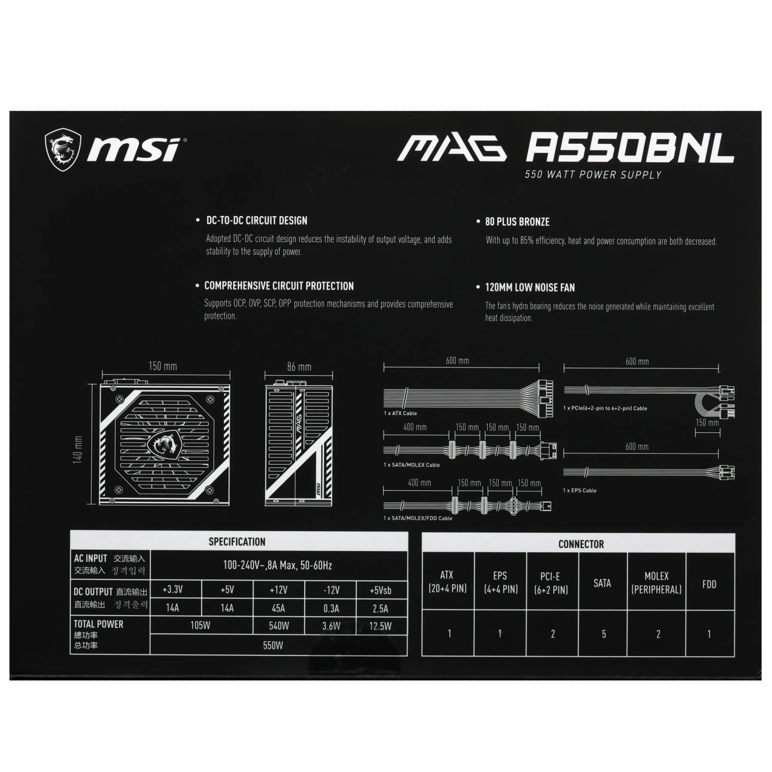 Блок питания MSI MAG A550BNL: надежность и эффективность в компактном формате