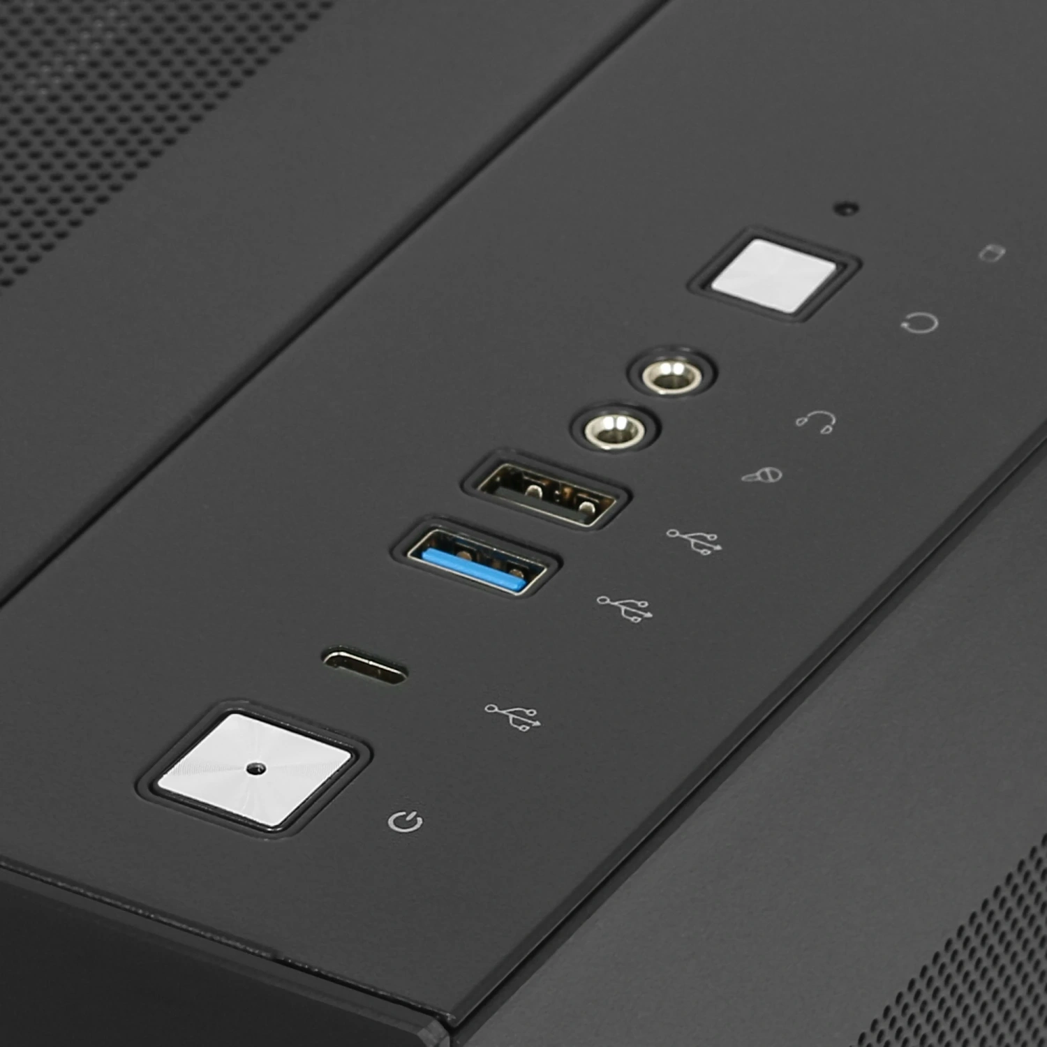 В верхней части корпуса расположена панель I/O с удобными разъемами, включая USB 3.2 Gen 1 Type-C, что позволяет легко подключать ваши устройства. Также предусмотрены отсек для 2.5" и 3.5" накопителей, что делает ARDOR GAMING C305 V2 универсальным решением для хранения данных.