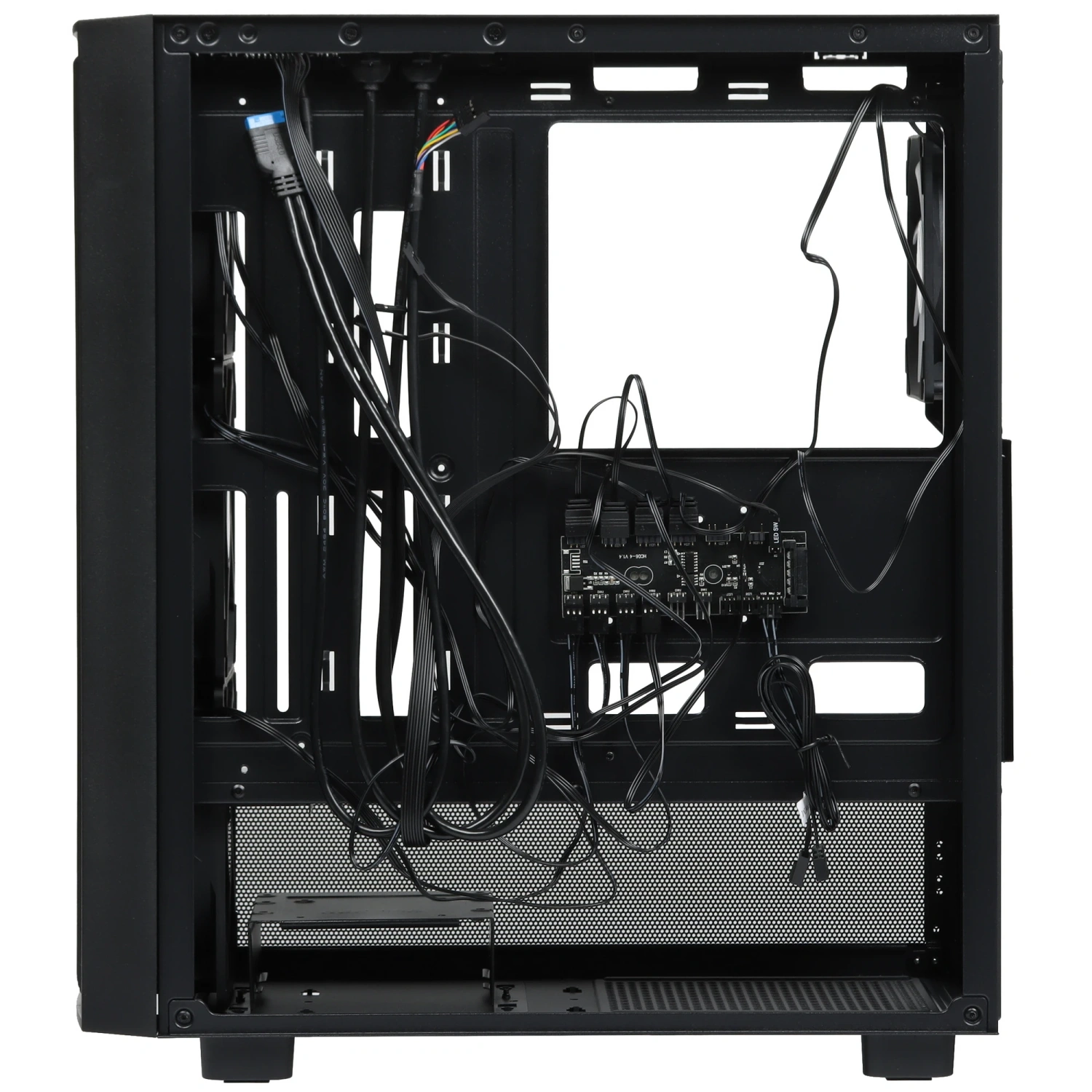 Прозрачное боковое окно из закаленного стекла позволяет продемонстрировать внутреннее убранство вашего ПК, а многоцветная ARGB-подсветка добавляет уникальности и стиля. Управление подсветкой осуществляется с помощью комплектного контроллера, что делает настройку простым и удобным процессом.