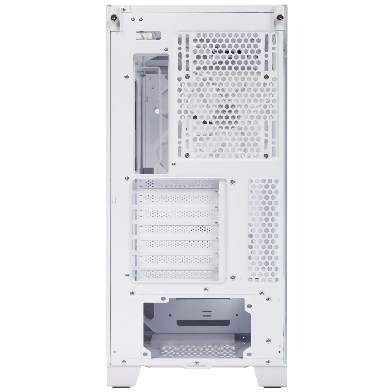 Сетчатая фронтальная панель и конические вентиляционные отверстия обеспечивают превосходный поток воздуха, что способствует снижению температуры внутри корпуса. В комплект входят три вентилятора с адресуемой RGB-подсветкой: два фронтальных диаметром 180 мм и один тыльный на 120 мм, создающие эффектное освещение и улучшая охлаждение.