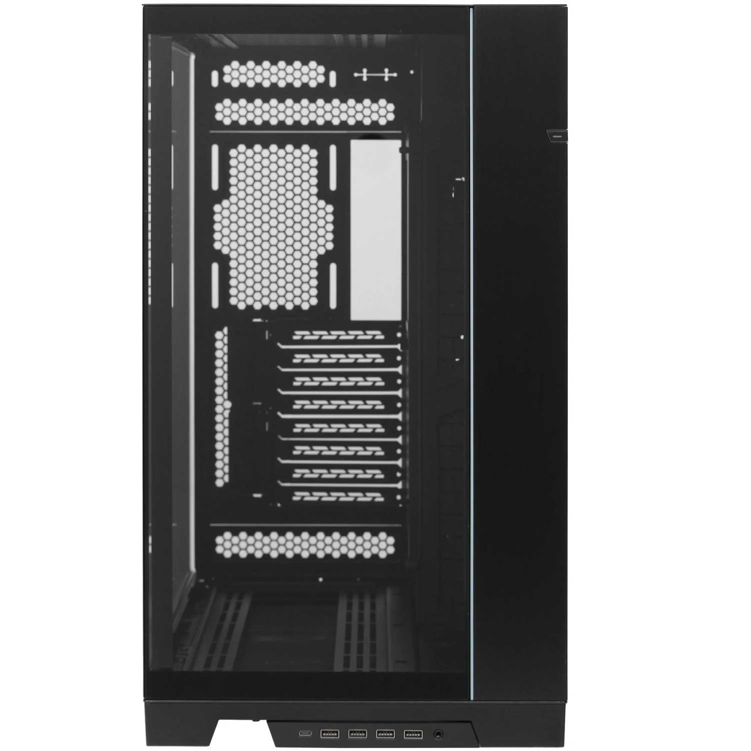 Сочетание алюминия, стали и закаленного стекла придает корпусу премиальный вид, а прозрачные панели обеспечивают великолепный обзор внутренней сборки. Встроенная многоцветная ARGB-подсветка добавляет индивидуальности, а удобный переключатель на корпусе позволяет легко управлять режимами подсветки.