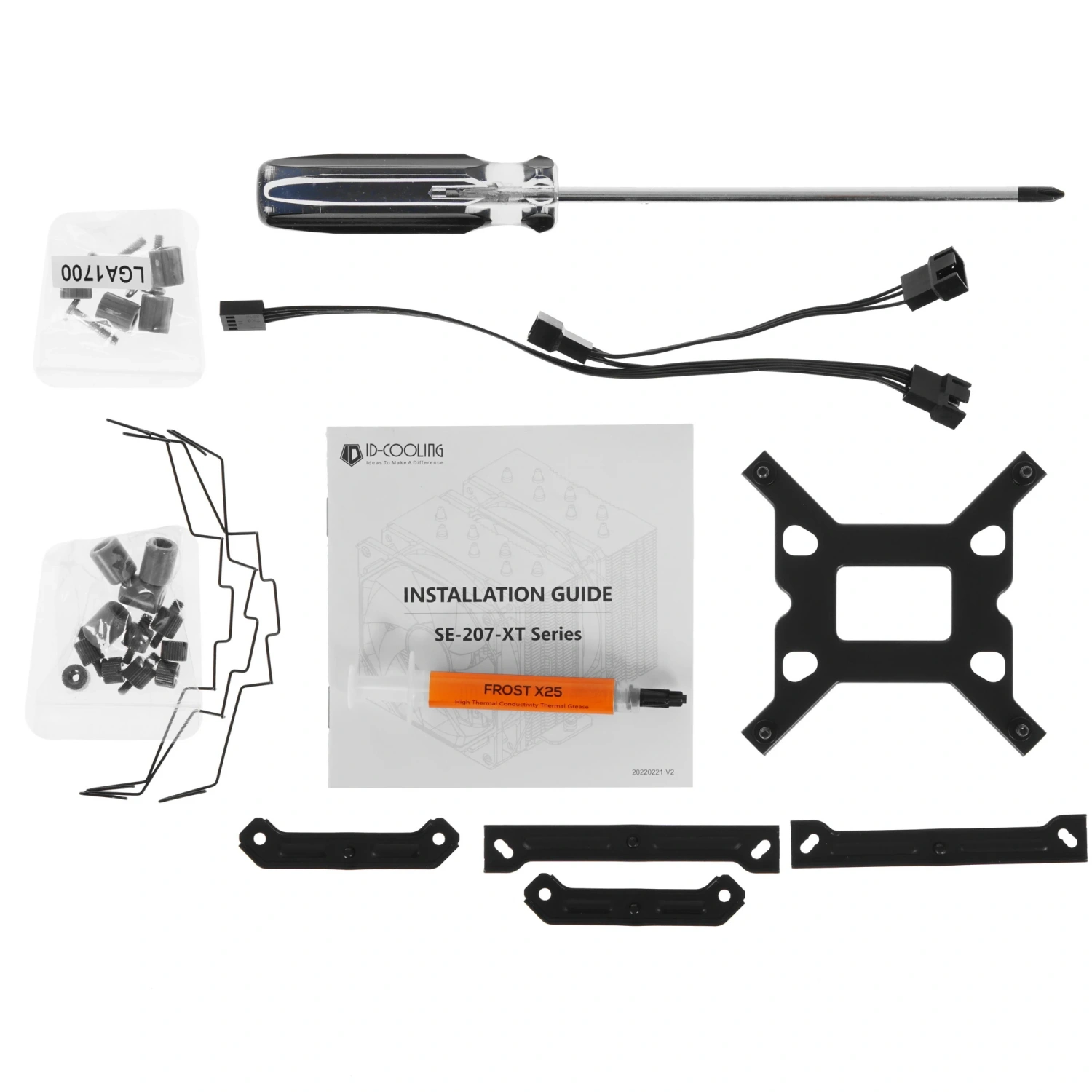 ID-COOLING SE-207-XT ADVANCED поставляется с термопастой в отдельной емкости, документацией и комплектом крепления, что упрощает установку. С двумя вентиляторами в комплекте и возможностью установки третьего, вы получите максимальную производительность охлаждения.