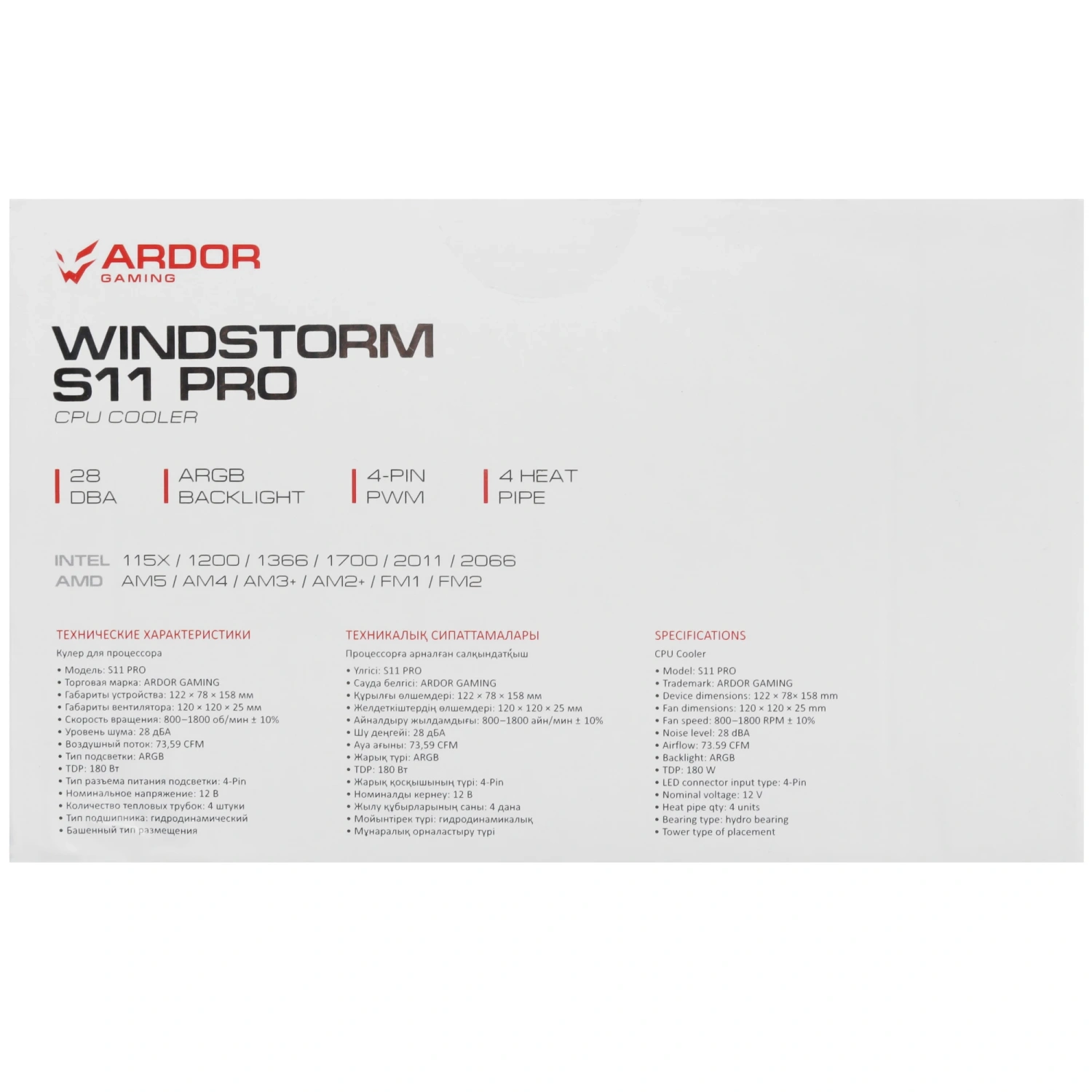 Кулер для процессора ARDOR GAMING WINDSTORM S11 PRO WHITE
