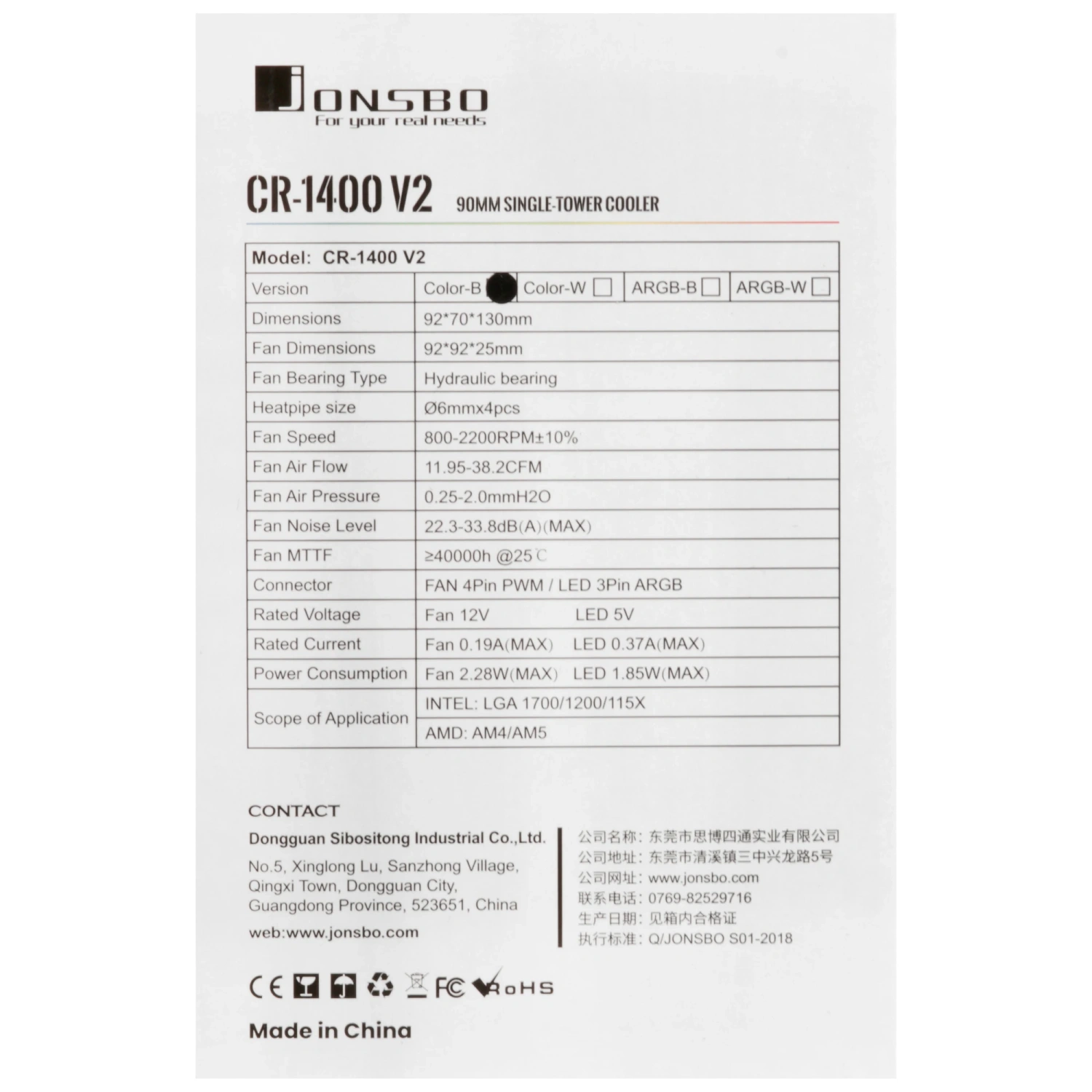 - Модель: JONSBO CR-1400 V2 Color