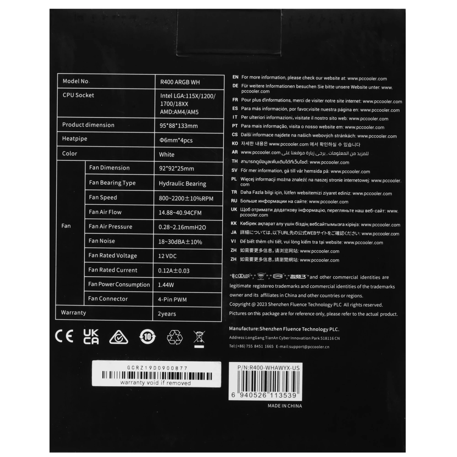 - Модель: PCCooler R400 ARGB WH