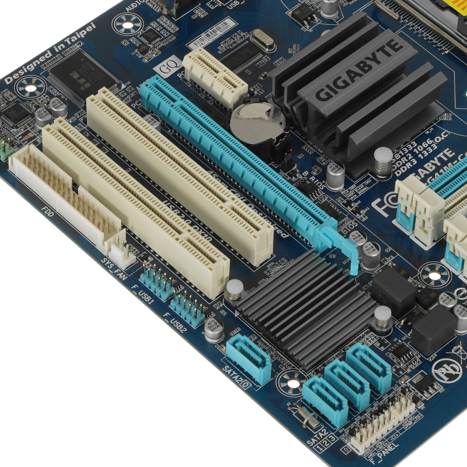 С размерами 244 мм на 210 мм, GIGABYTE GA-G41M-COMBO-GQ легко впишется в любой корпус, даже в условиях ограниченного пространства. Плата поддерживает до 8 ГБ оперативной памяти DDR3 с частотой до 1333 МГц, что обеспечивает высокую скорость работы и многозадачность. Четыре слота SATA позволяют подключать множество накопителей, а слоты расширения PCI-E x16 и PCI предоставляют возможность добавления дополнительных компонентов.