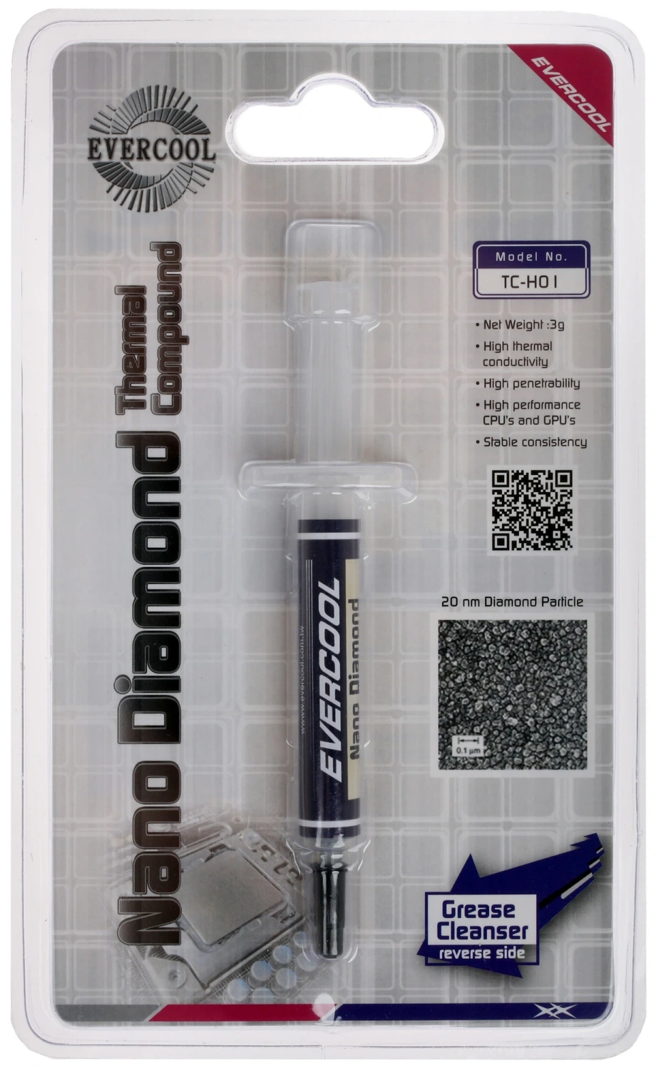 Evercool Nano Diamond TC-H01 поставляется в удобном шприце, что делает процесс нанесения легким и аккуратным. Вы сможете точно контролировать количество термопасты, избегая излишков и обеспечивая равномерное распределение по поверхности. Это особенно важно для достижения максимальной эффективности теплоотведения.