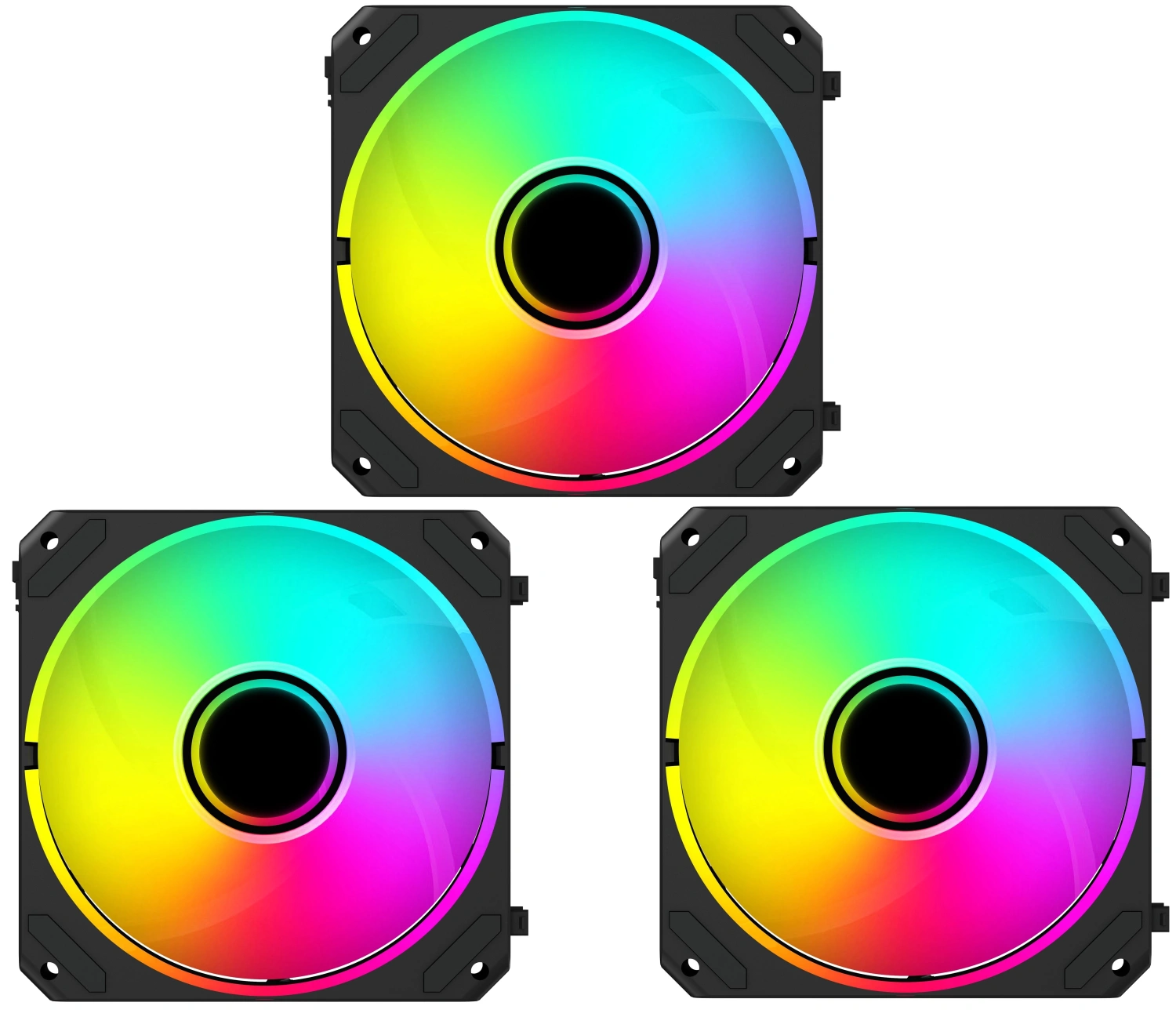 Подсветка ARGB, встроенная в крыльчатку вентиляторов, позволяет создать уникальную атмосферу в вашем игровом пространстве. Вы можете наслаждаться множеством цветов и эффектов, которые легко синхронизируются между всеми вентиляторами, добавляя индивидуальности вашему компьютеру.