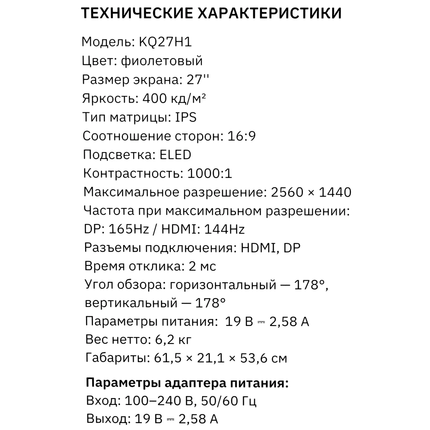 Представляем вам стильный и функциональный 27-дюймовый монитор KEYRON KQ27H1 в элегантном фиолетовом корпусе. Этот монитор не только привлекает внимание своим дизайном, но и предлагает великолепное качество изображения благодаря IPS-панели с разрешением 2560x1440 пикселей. Яркие и насыщенные цвета, а также матовое покрытие экрана обеспечивают комфортный просмотр без бликов и отражений, что делает его идеальным для работы и игр.