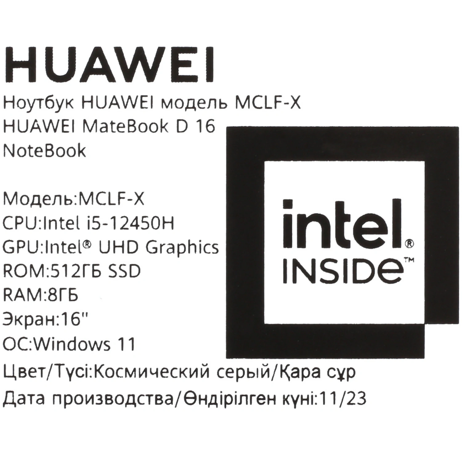 - Модель: HUAWEI MateBook D 16 2024 MCLF-X