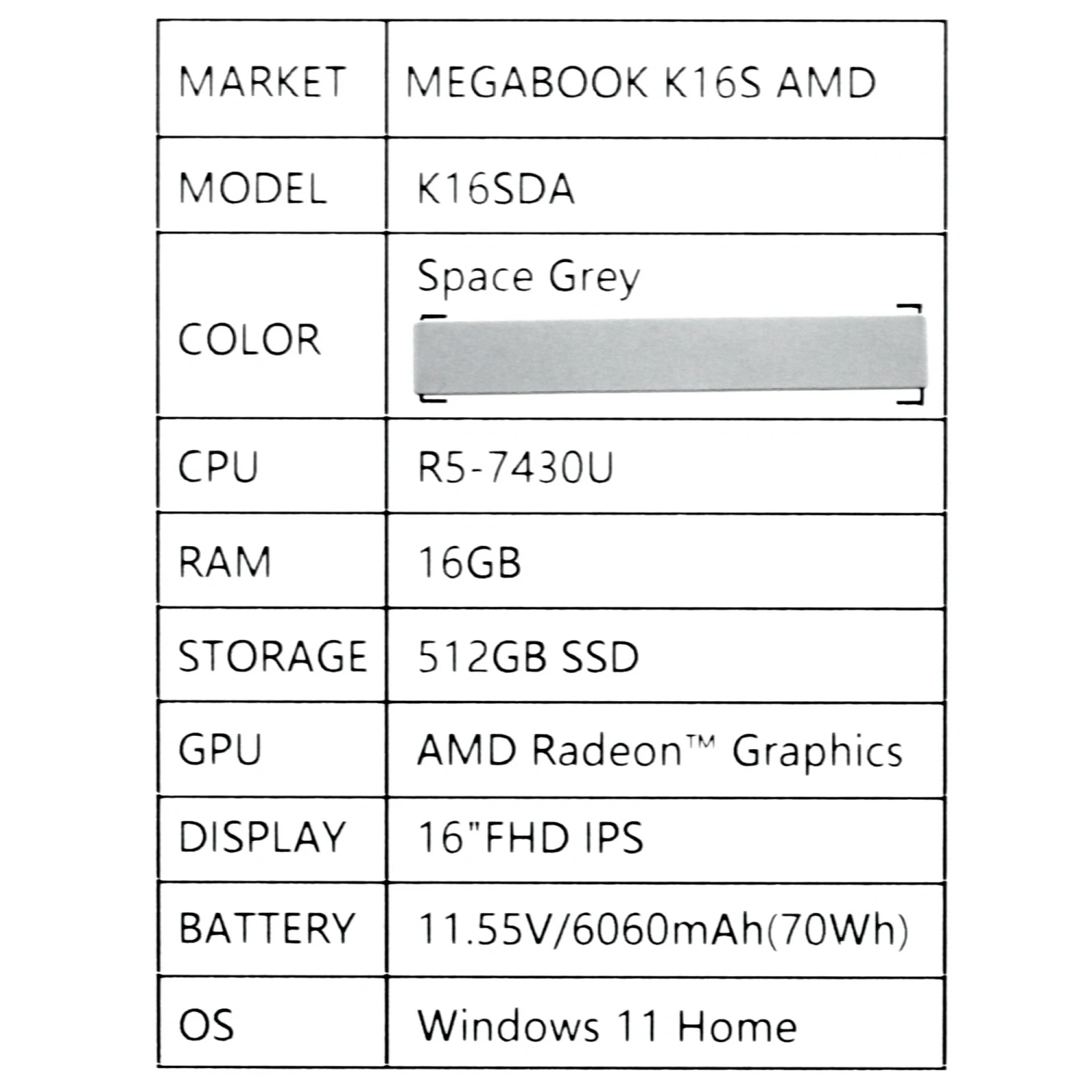 - Модель: Tecno Megabook K16S
