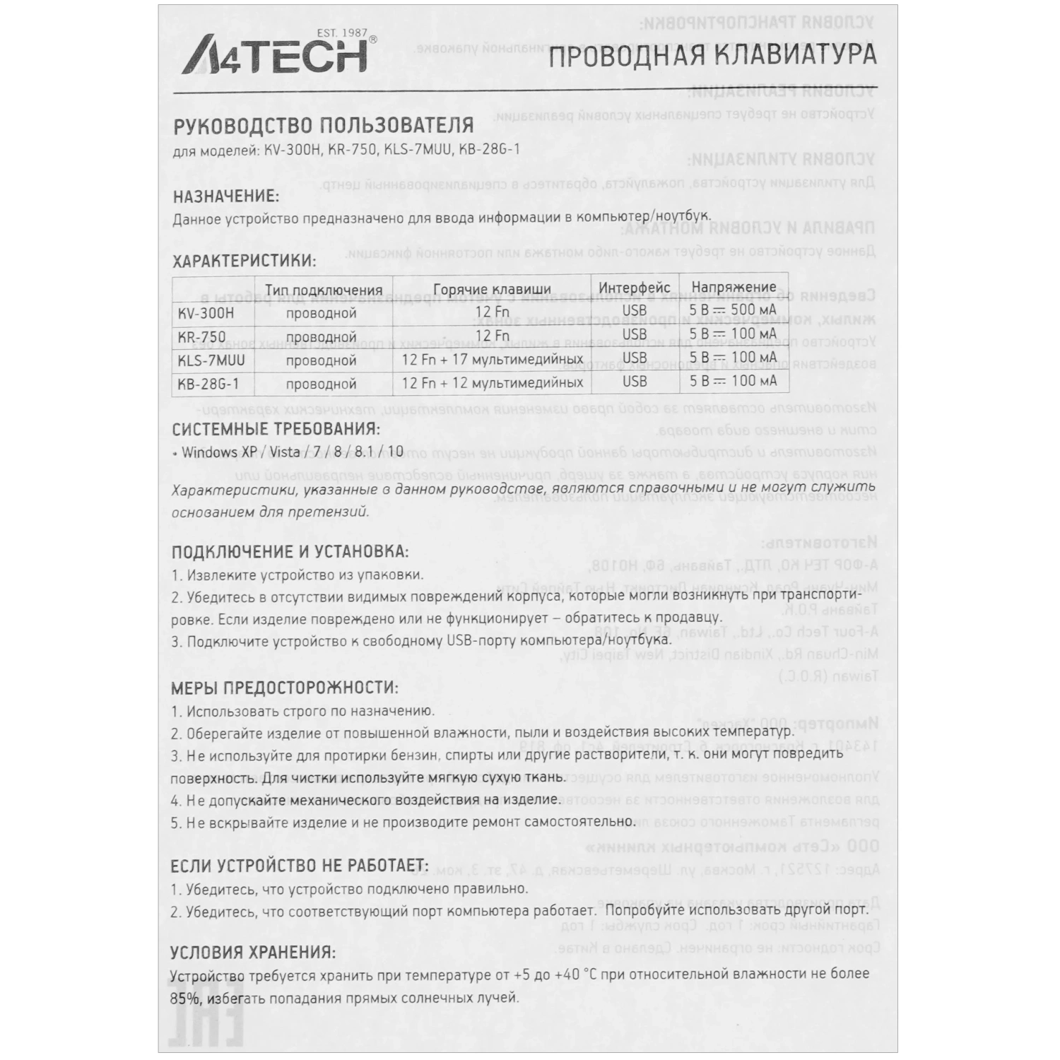 - Модель: A4Tech KR-750