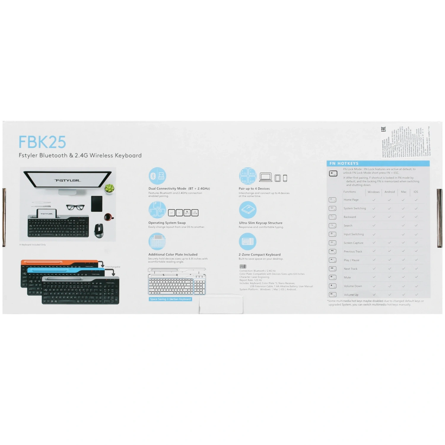 Беспроводная клавиатура A4Tech Fstyler FBK25 – это надежное решение для работы и учебы, сочетающее в себе стильный дизайн и функциональность. Подключение через Bluetooth или радиоканал на частоте 2.4 ГГц обеспечивает стабильную связь и свободу движения, позволяя вам работать без лишних проводов.