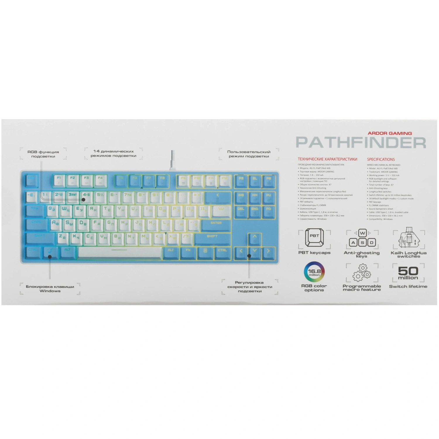 Представляем вам проводную механическую клавиатуру ARDOR GAMING Pathfinder, созданную для настоящих геймеров. Ее стильный бело-синий дизайн не только привлекает внимание, но и обеспечивает комфорт во время долгих игровых сессий. С 87 клавишами и линейными переключателями Kailh LongHua, эта клавиатура гарантирует высокую скорость отклика и точность, что особенно важно в напряженных моментах игры.