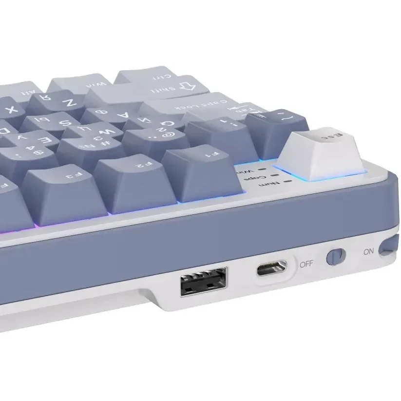 Royal Kludge RK-S98 предлагает три способа подключения: по Bluetooth, через радиоканал на частоте 2.4 ГГц и с помощью USB-кабеля. Это позволяет вам легко переключаться между устройствами и наслаждаться беспроводной свободой или стабильным проводным соединением.