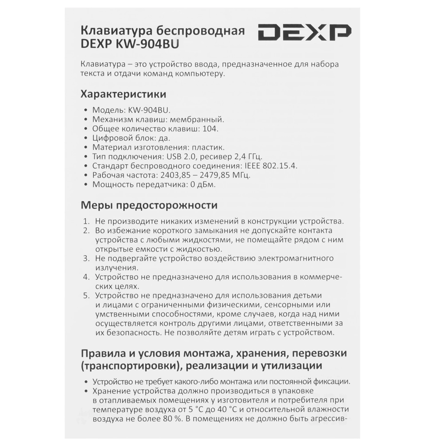DEXP KW-904BU
