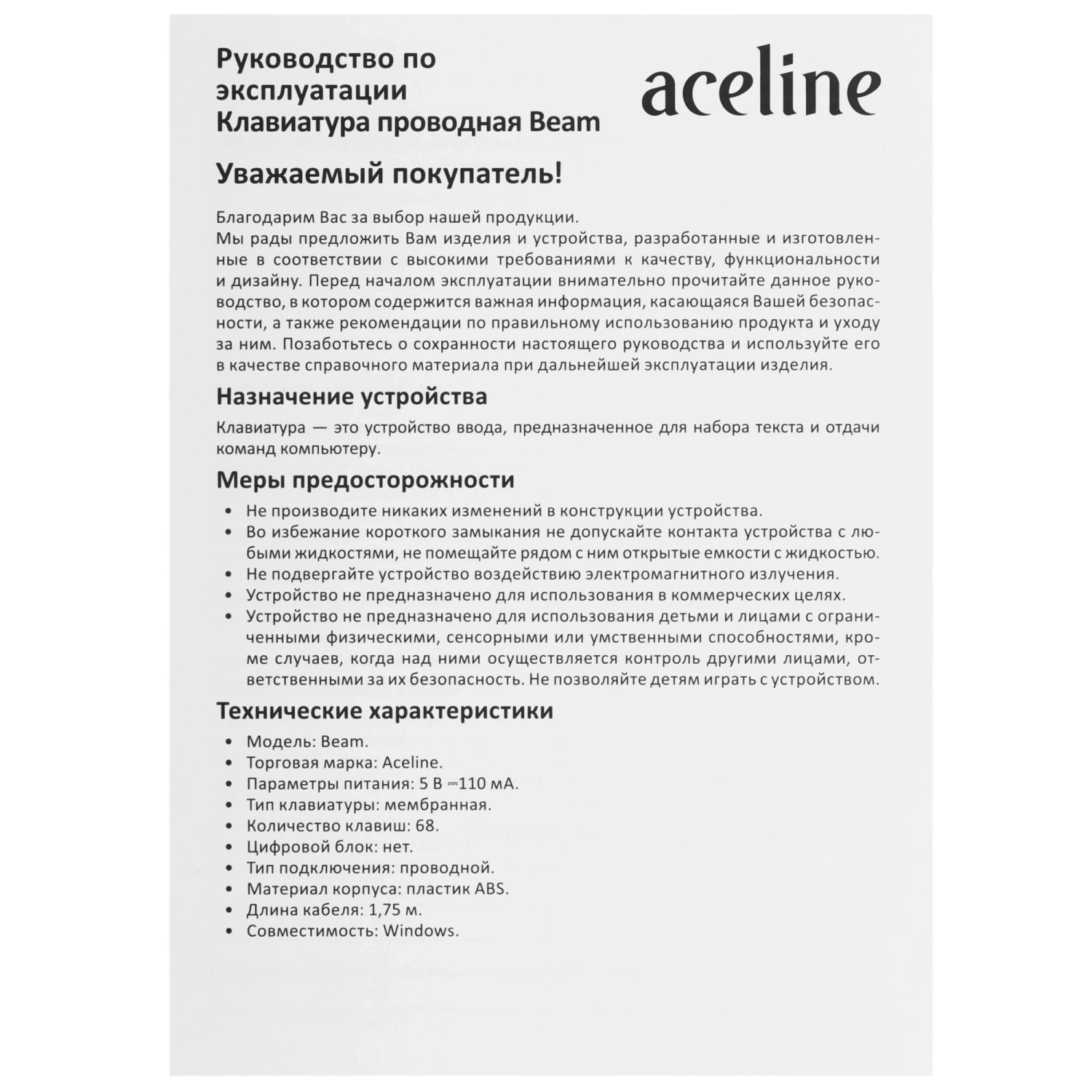 Купить клавиатура проводная aceline gs beam