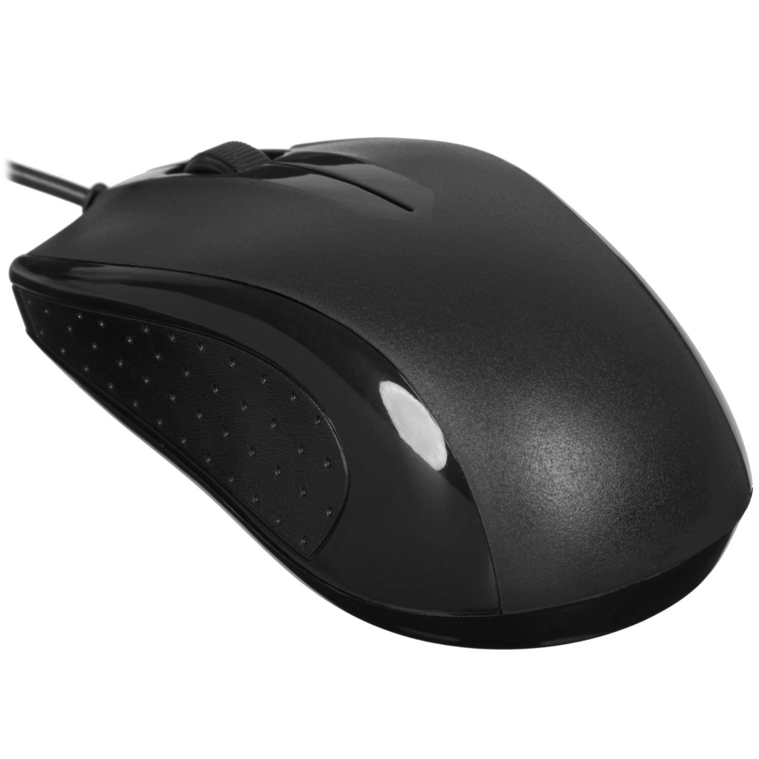 Мышь с симметричной формой и удобным расположением кнопок подходит для использования как правой, так и левой рукой. Матовый пластиковый корпус обеспечивает надежный хват и предотвращает скольжение, а светодиодный оптический сенсор с разрешением 1000 dpi гарантирует точность и скорость работы.