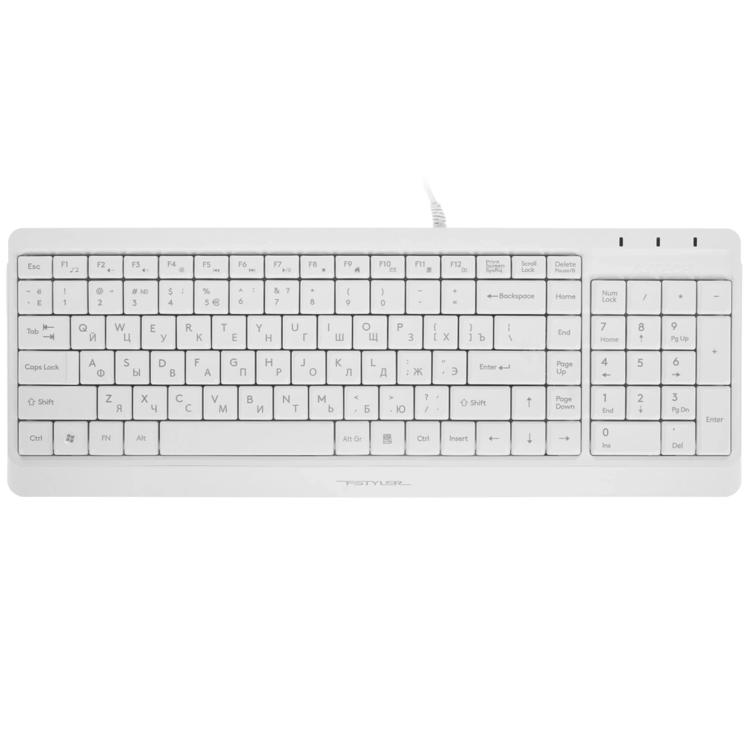 Представляем вашему вниманию проводной комплект клавиатуры и мыши A4Tech Fstyler F1512 в стильном белом цвете. Этот набор не только привнесет стиль в ваш рабочий уголок, но и обеспечит надежность и комфорт при использовании. Клавиатура с мембранным механизмом откликает на нажатия мгновенно, что делает её идеальным выбором для быстрого ввода данных и работы с различными приложениями.