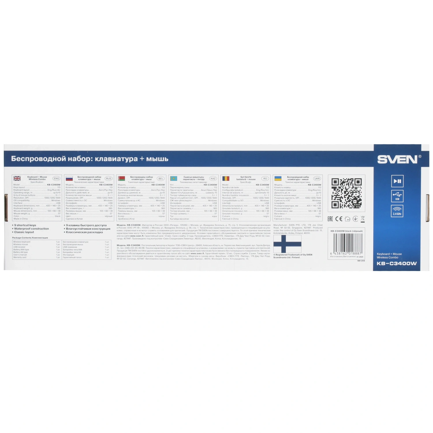 Беспроводной комплект клавиатуры и мыши SVEN KB-C3400W