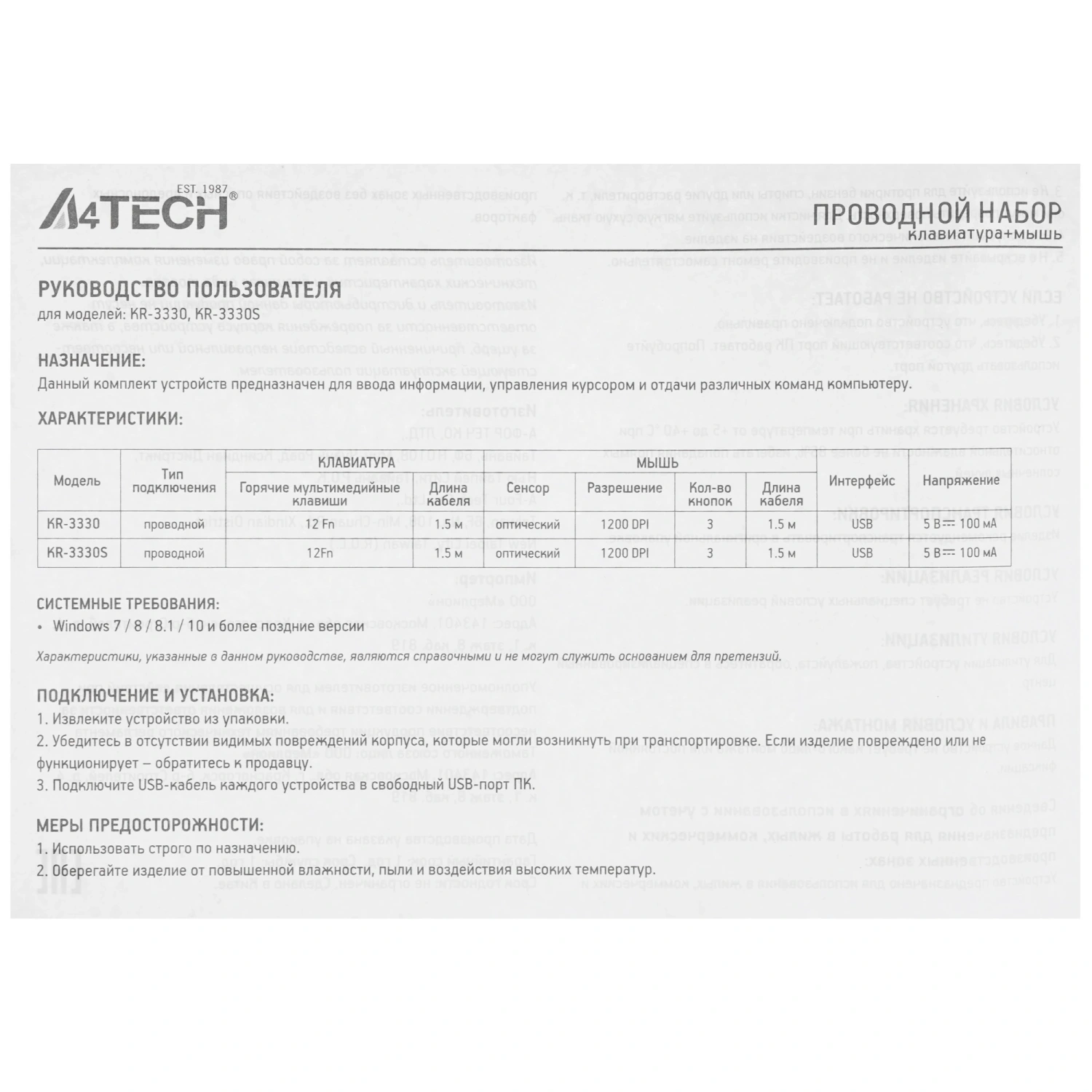 Купить клавиатура+мышь  проводная  a4tech kk-3330 черный