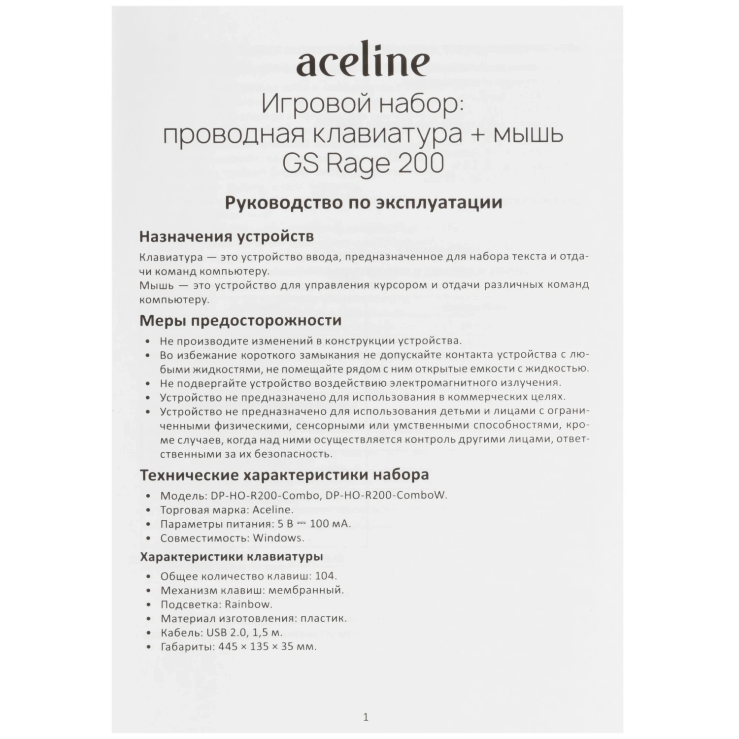 —Клавиатура+мышь проводная Aceline GS Rage 200 белый