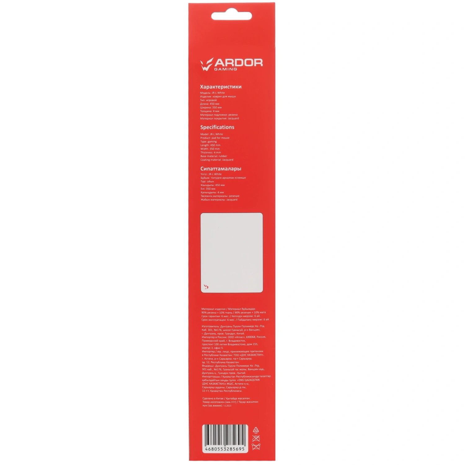 Изготовленный из жаккарда и резины, коврик ARDOR GAMING JR-L сочетает в себе прочность и комфорт. Его толщина в 4 мм обеспечивает отличную амортизацию, что делает использование коврика максимально удобным даже во время длительных игровых сессий.