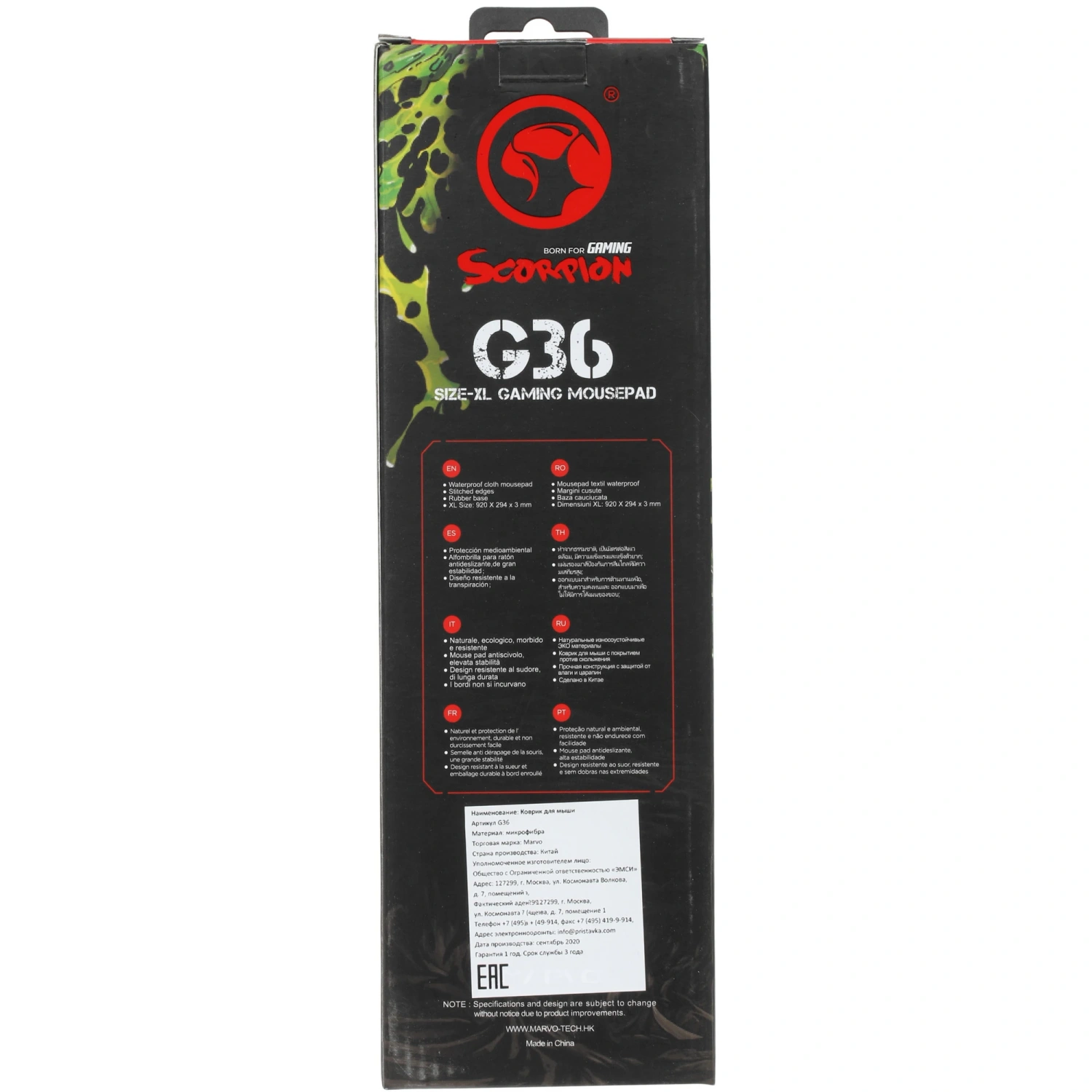 Коврик PC Marvo G36 MR38 (XL) – Ваш идеальный игровой партнер