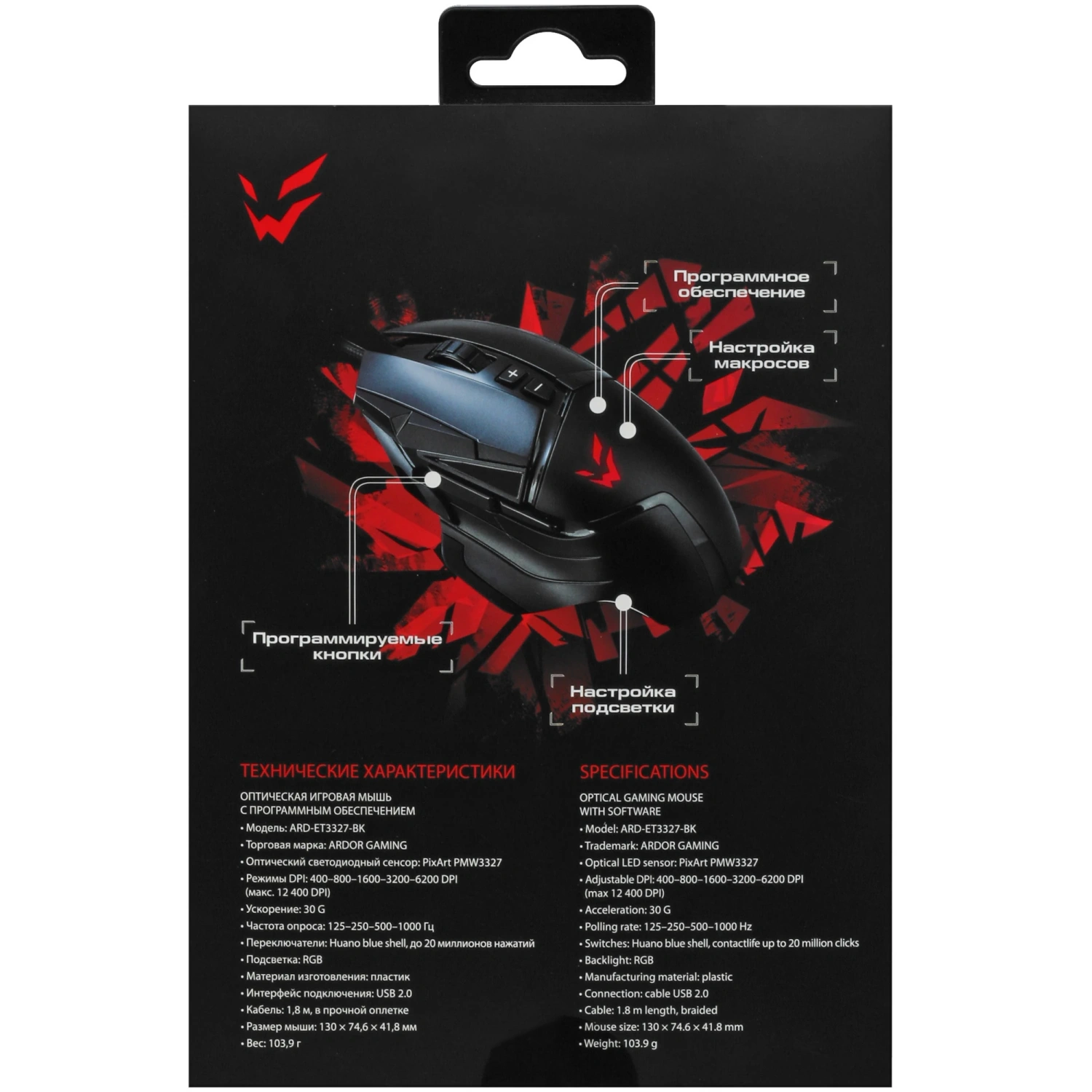 Кабель длиной 1.8 метра с тканевой оплеткой защищает от заломов и обеспечивает долговечность. Оптический светодиодный сенсор PixArt PMW3327 гарантирует высокую точность и быстрый отклик, что делает каждое движение плавным и контролируемым. С максимальным разрешением 12400 dpi вы сможете адаптировать чувствительность под свои предпочтения, а возможность выбора режимов работы от 400 до 6200 dpi позволит вам настроить мышь под любые игровые сценарии.