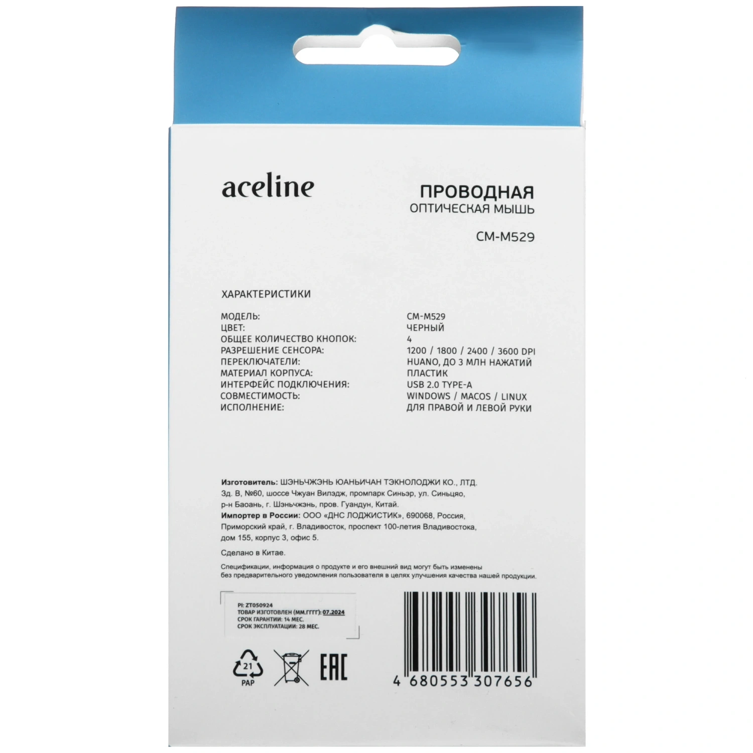 Представляем вам проводную мышь Aceline CM-M529BL Silent – идеальное решение для комфортной работы за компьютером. С её компактным черным корпусом и продуманным дизайном, эта мышь станет вашим надежным помощником в повседневных задачах. Четыре кнопки управления позволят легко выполнять любые действия, а оптический светодиодный сенсор с поддержкой четырех режимов работы (1200 dpi, 1800 dpi, 2400 dpi и 3600 dpi) обеспечит точность и скорость, необходимые для выполнения самых разнообразных задач.