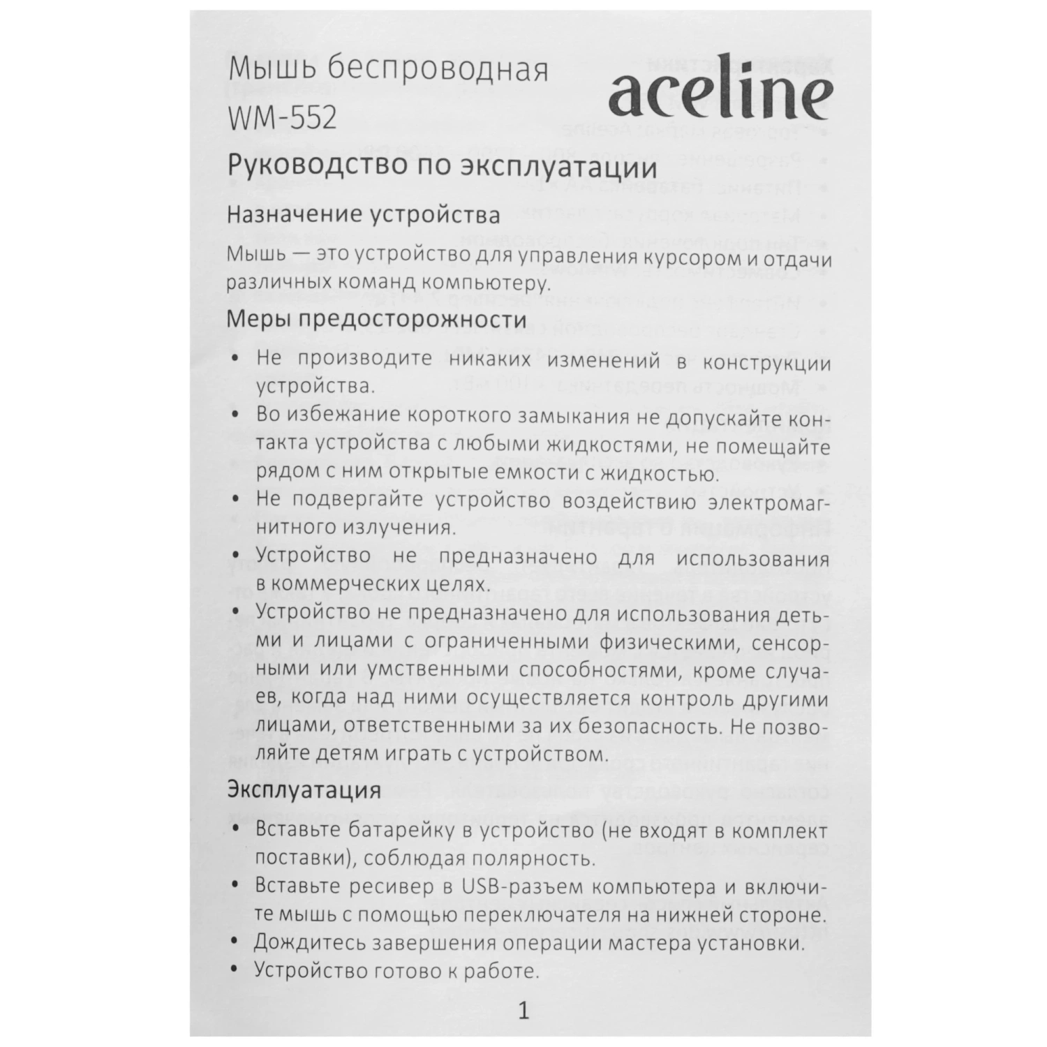 Покупая Aceline WM-552, вы получаете надежного помощника, который сделает вашу работу более продуктивной и комфортной. Не упустите возможность улучшить свои рабочие условия с этой стильной и функциональной мышью!