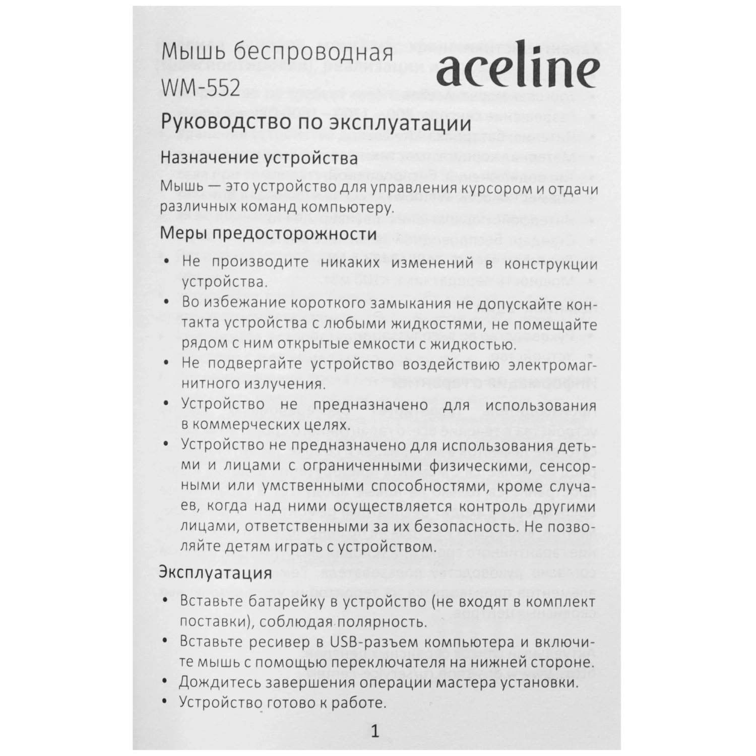 С мышью Aceline WM-552 вы забудете о проводах! Подключение осуществляется через USB-ресивер, который идет в комплекте, а радиус действия достигает 10 метров. Это дает вам свободу передвижения и возможность организовать рабочее пространство так, как вам удобно.