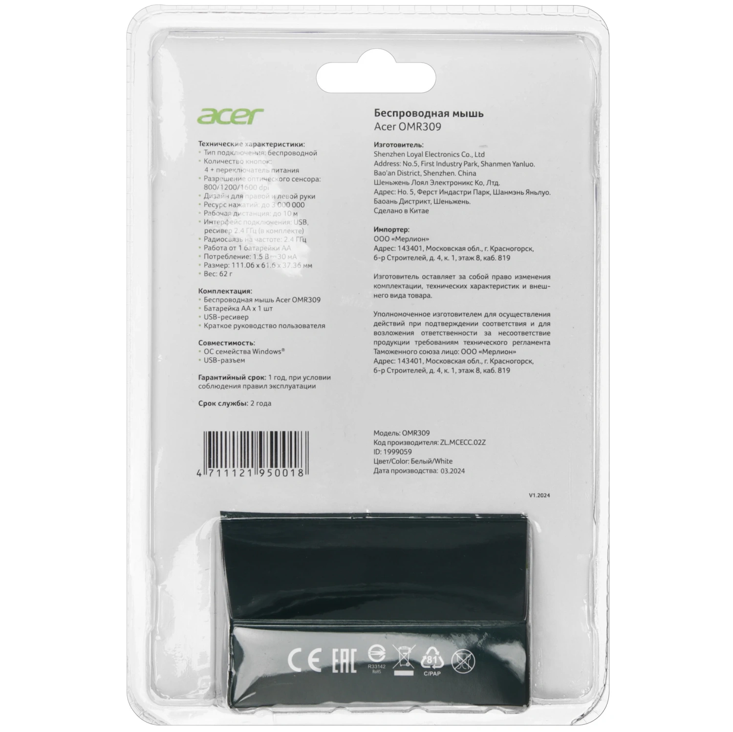 Беспроводная мышь Acer OMR309: элегантность и функциональность