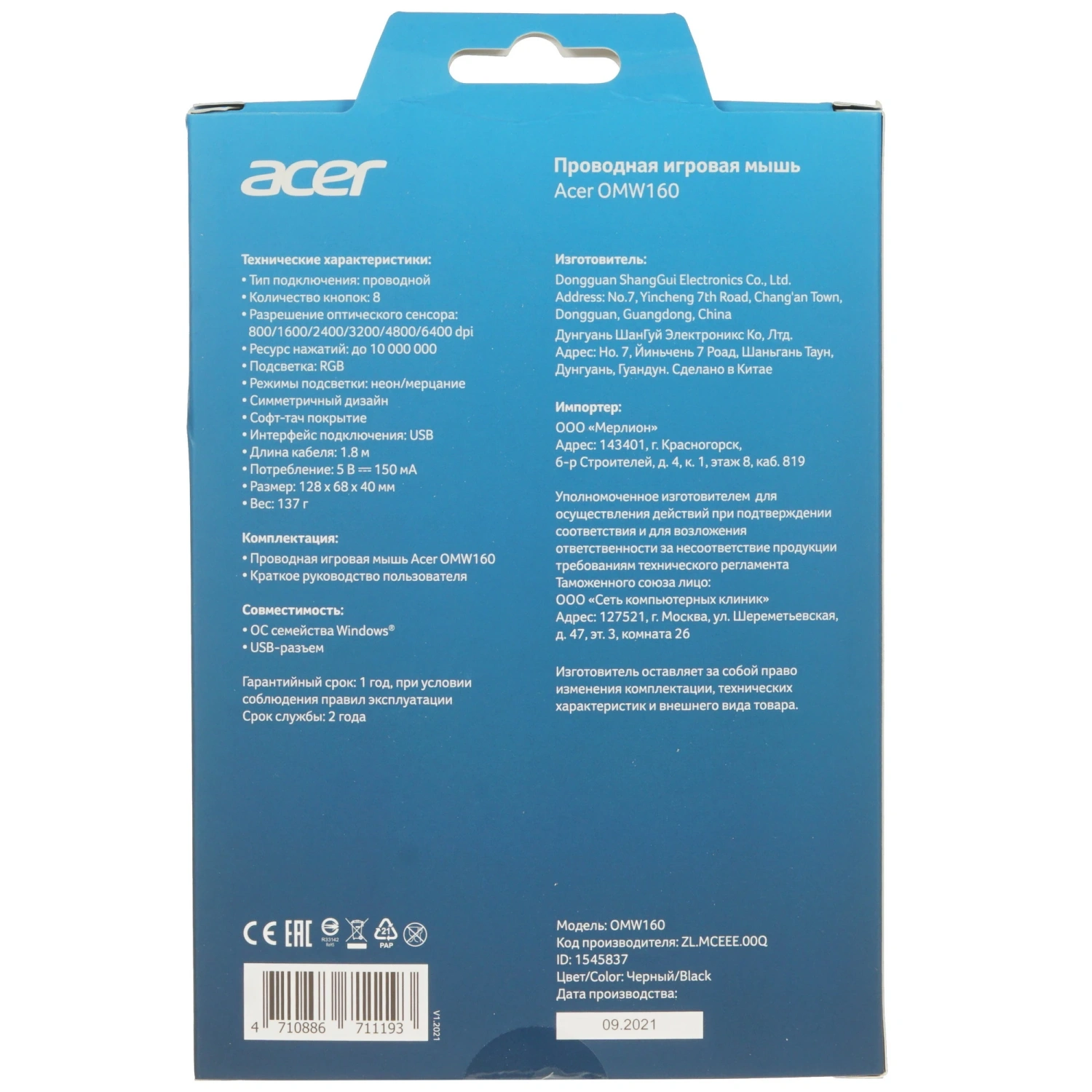 - Модель: Acer OMW160