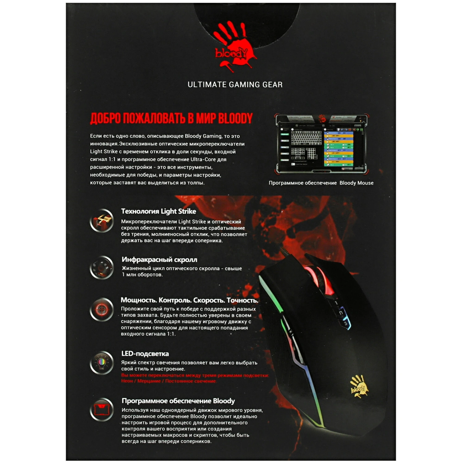 С помощью программного обеспечения Bloody вы сможете настроить каждую кнопку и параметры мыши для достижения максимального удовольствия от игрового процесса. Не упустите возможность сделать вашу игру более эффективной и увлекательной!