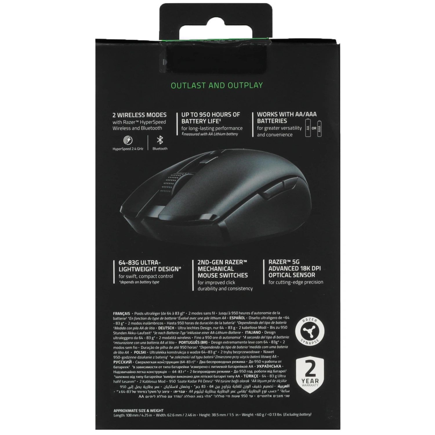 С Razer Orochi V2 вы забудете о подзарядке на долгое время. Эта мышь может работать до 950 часов на одной батарейке, что позволяет сосредоточиться на игре, а не на замене источника питания.