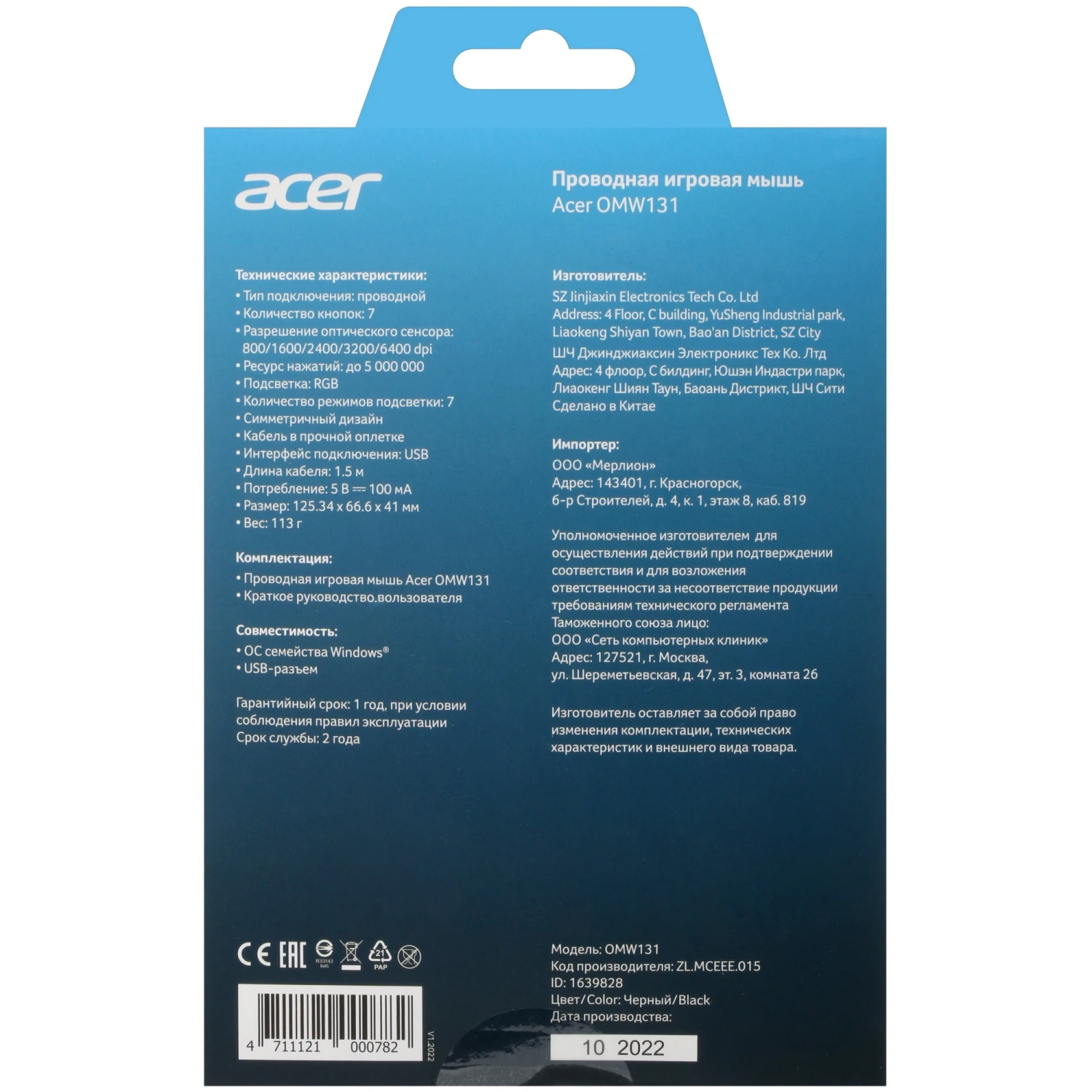 Купить мышь проводная acer omw131 [zl.mceee.015] черный