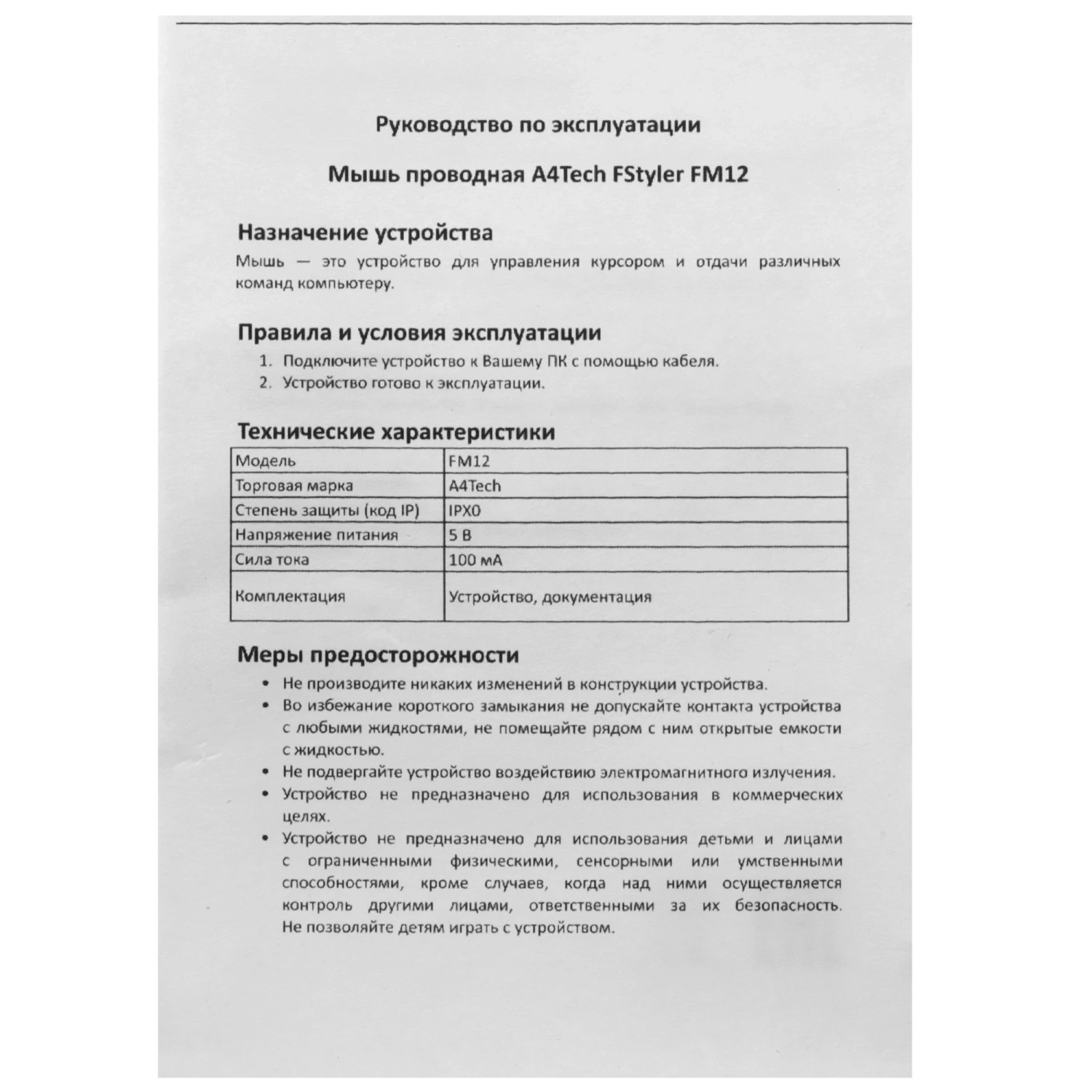 —Мышь проводная A4Tech Fstyler FM12 черный