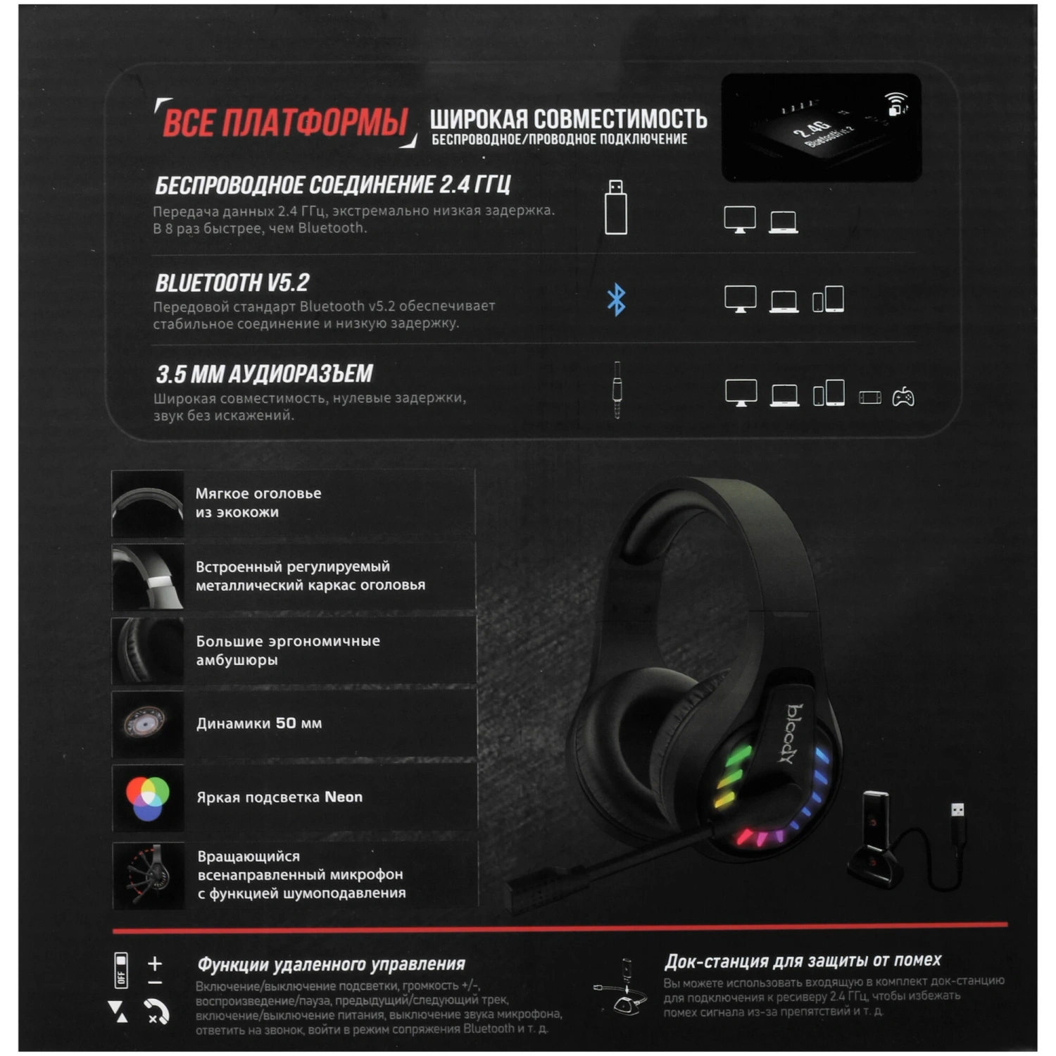 Откройте для себя мир качественного звука с наушниками A4Tech Bloody GR230! Эта универсальная модель поддерживает два типа подключения: беспроводное через Bluetooth 5.2 и проводное с помощью стандартного разъема 3.5 mm jack. Идеально подходит как для стационарных компьютеров, так и для мобильных устройств, наушники обеспечивают стабильную связь и минимальную задержку, что особенно важно для геймеров.