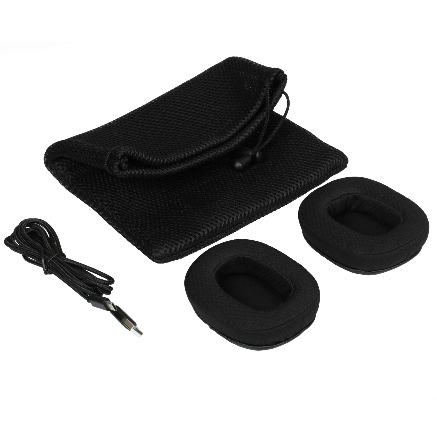 - Комплектация: 1 пара сменных амбушюр, USB адаптер, кабель USB Type-A - USB Type-C, микрофон, чехол